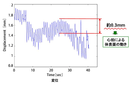 心臓の動きによる体表面の微小な動きを計測することができる。