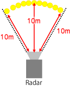 Radarを固定して測定した場合、ターゲットまでの距離はわかるが、ターゲットの位置・方向を特定することは不可能